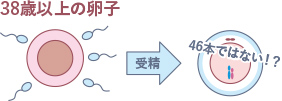 老化した卵子の場合、その減数分裂の時に染色体分離がうまくいかず染色体本数が異常な受精卵が発生します。ヒトの染色体本数は46本ですが、染色体本数が多かったり少なかったりすると、受精をしなかったり、受精をしても途中で発生が停止して胚盤胞まで育たなかったり、発生が進み妊娠まで至ったとしても、その先で流産をするか、あるいはダウン症などで知られる先天性の染色体異常を有した児の誕生に繋がります。