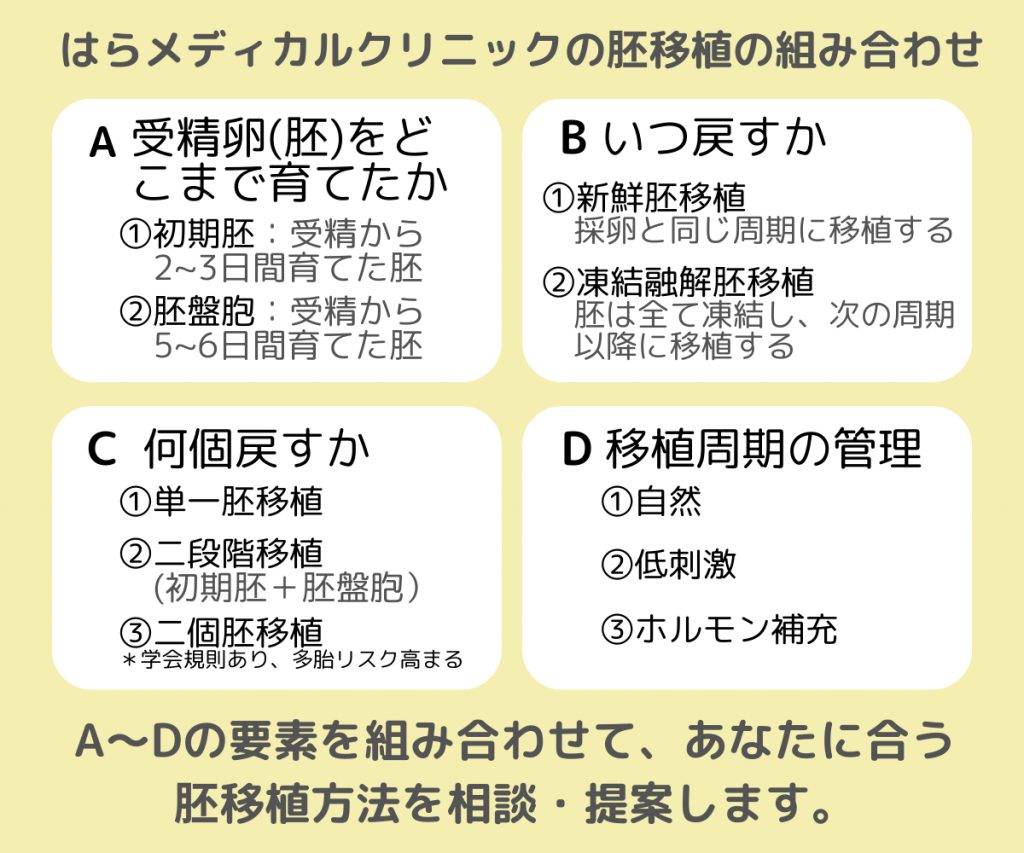 ただし、出産時の合併症には、移植する胚の数や、移植方法の選択が関係する場合もあります。