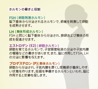 分泌されたFSHホルモンは卵巣に届き結果的にエストロゲン(E2)の分泌量を上げます。