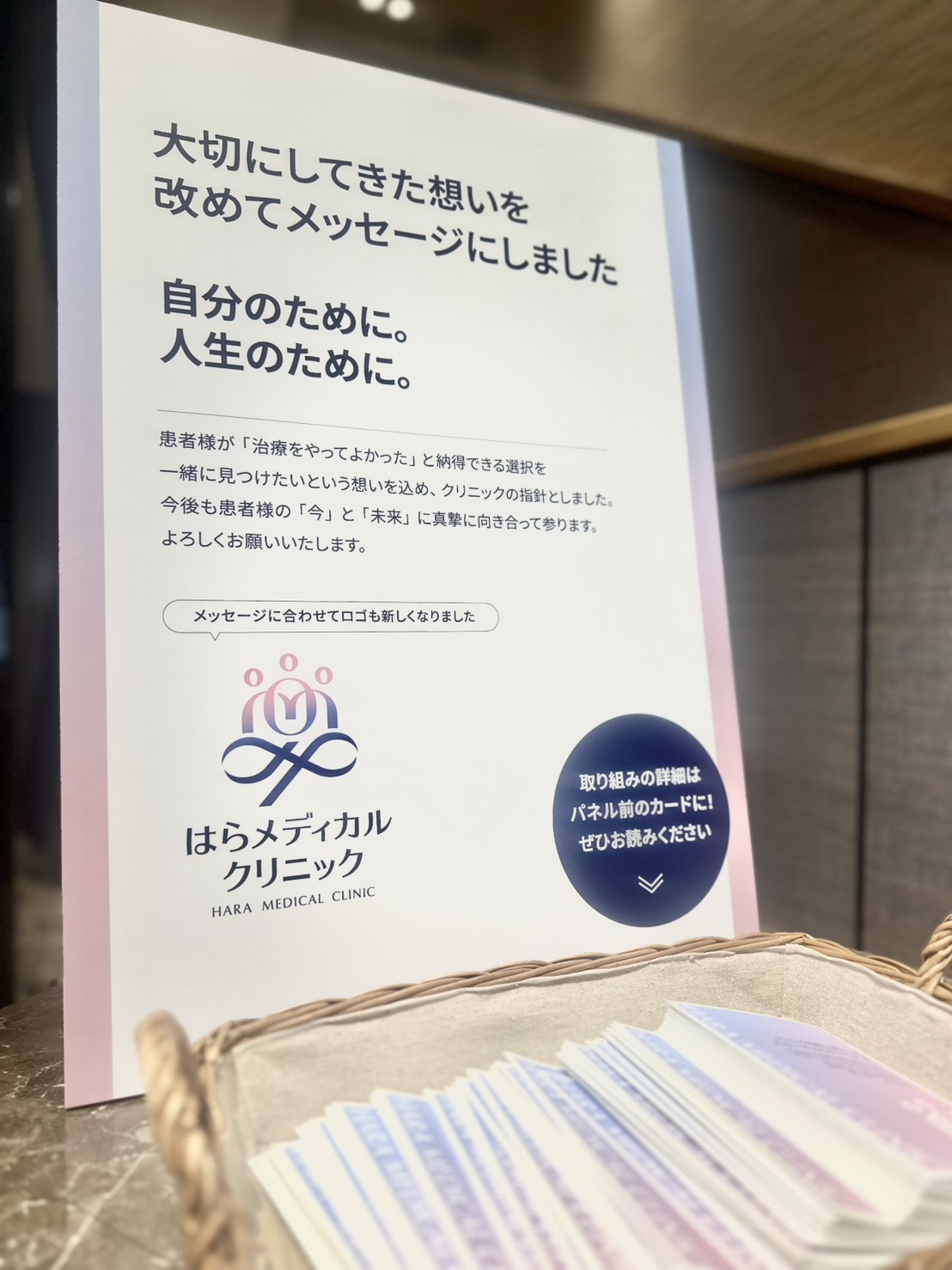 今回整理した理念とロゴの背景をカードにまとめました。1階ロビーに置いておりますので、ご来院の際に、よろしければご覧ください。