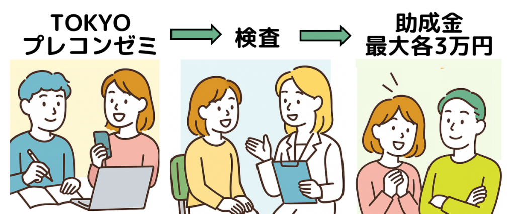 TOKYOプレコンゼミを受講し、以下の条件を満たす方には、男性も女性も、検査費用の一部(最大30,000円)が東京都から助成されます。